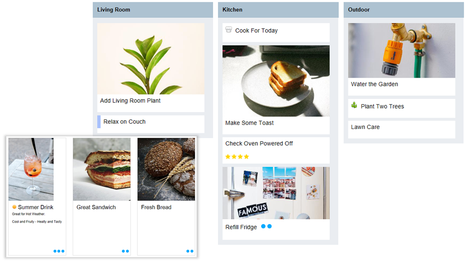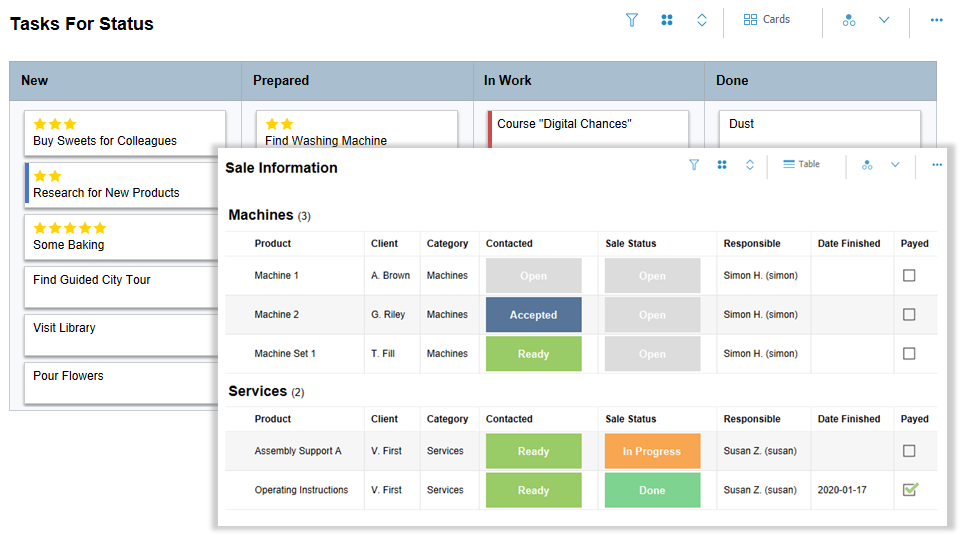 Different view modes allow goal-oriented organisation of data - in Kanban-Boards, with Grouping, ...
